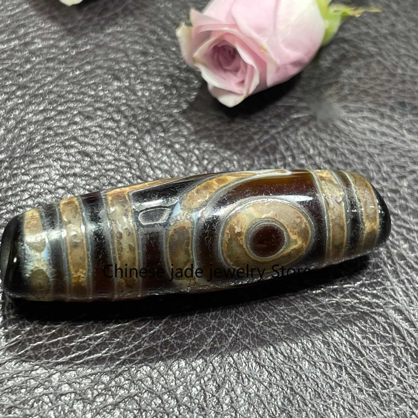 Alter tibetischer Buddhismus, alter Achat, DZI-Perlen, 2-Augen-Amulett-Anhänger, 48 x 13 mm # 2747