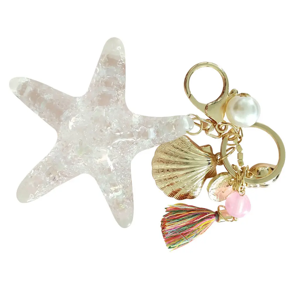 Perlen-Schlüsselanhänger mit Quaste, Seestern und Muschel - Taschenanhänger, Rucksack- und Handyzubehör im Ozean- und Strandthema, Niedlicher Schlüsselring-Dekor
