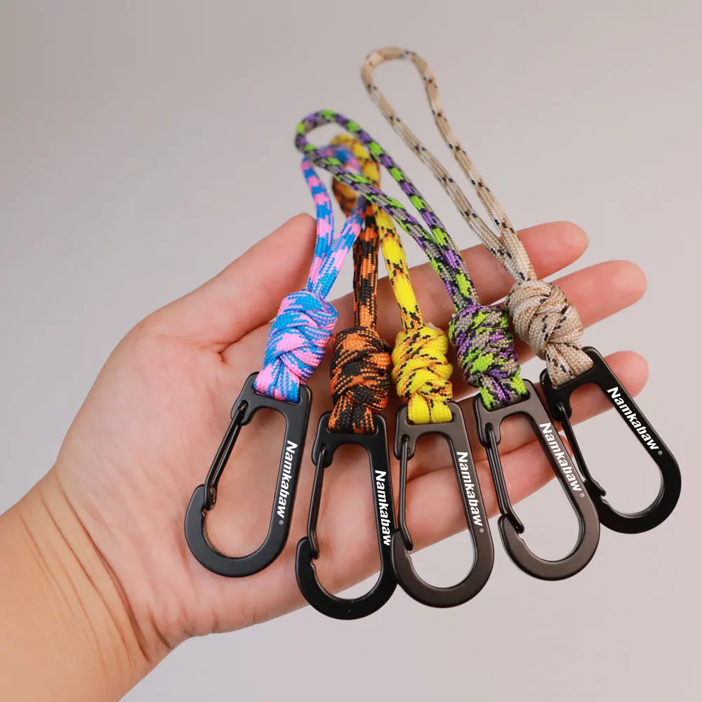 Paracord-Schlüsselanhänger (mehrere Farben), robustes gewebtes Seil, schwarzer Metallkarabiner, langlebiger tragbarer Schlüsselanhänger, praktischer Outdoor-Stil