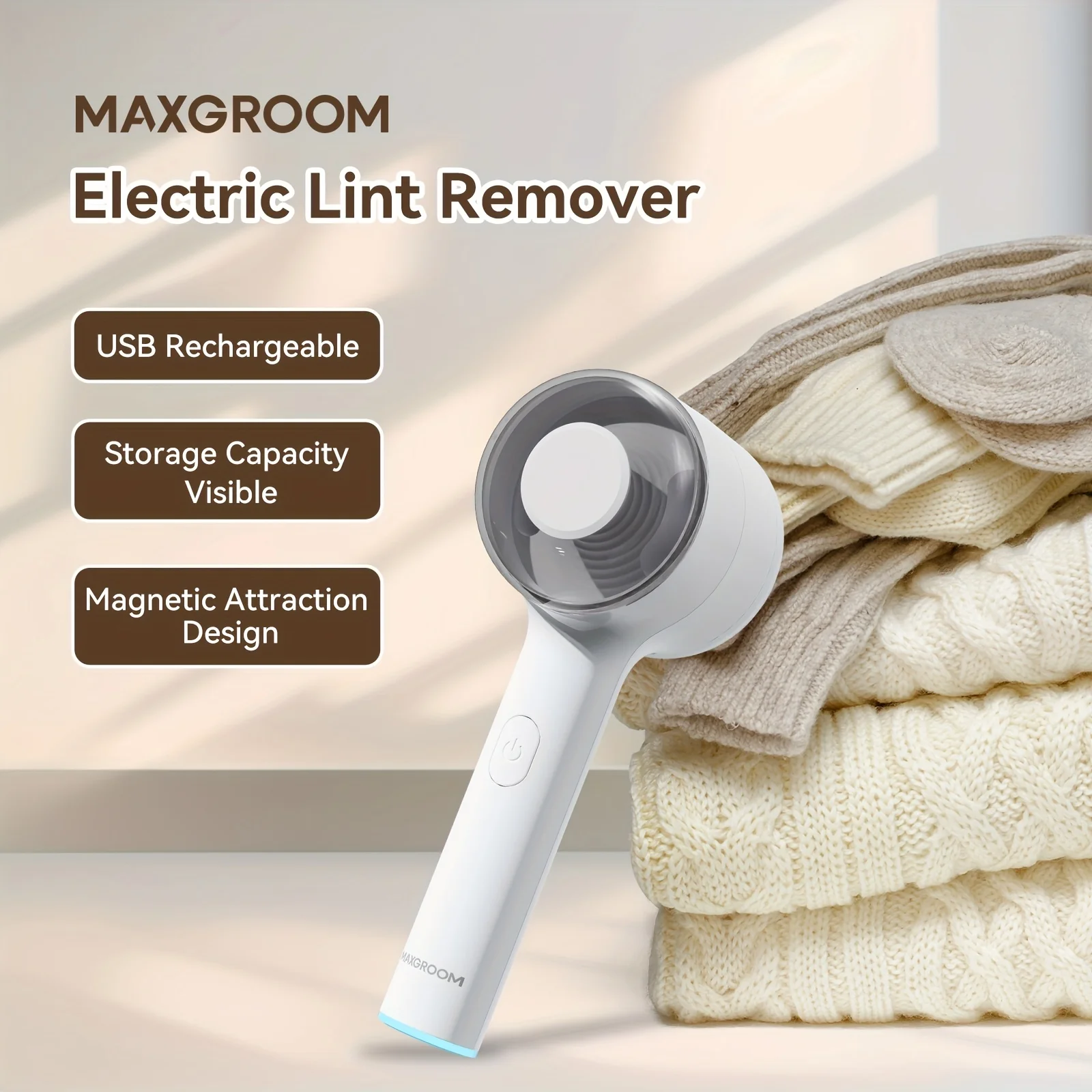 MAXGROOM Wiederaufladbarer Fuzz-Stoffrasierer, elektrischer Fusselentferner, Wollknäueltrimmer mit für Pullover, Wolle, tragbarer Pilling-Rasierer
