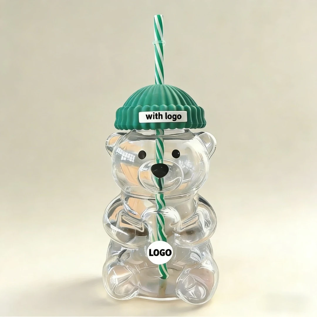 Transparenter Glasbecher in Bärenform mit Logo, geeignet für Wasser, Milch, Kaffee, Milchtee, Kaltgetränke, geeignet für Zuhause, Büro und Reisen.