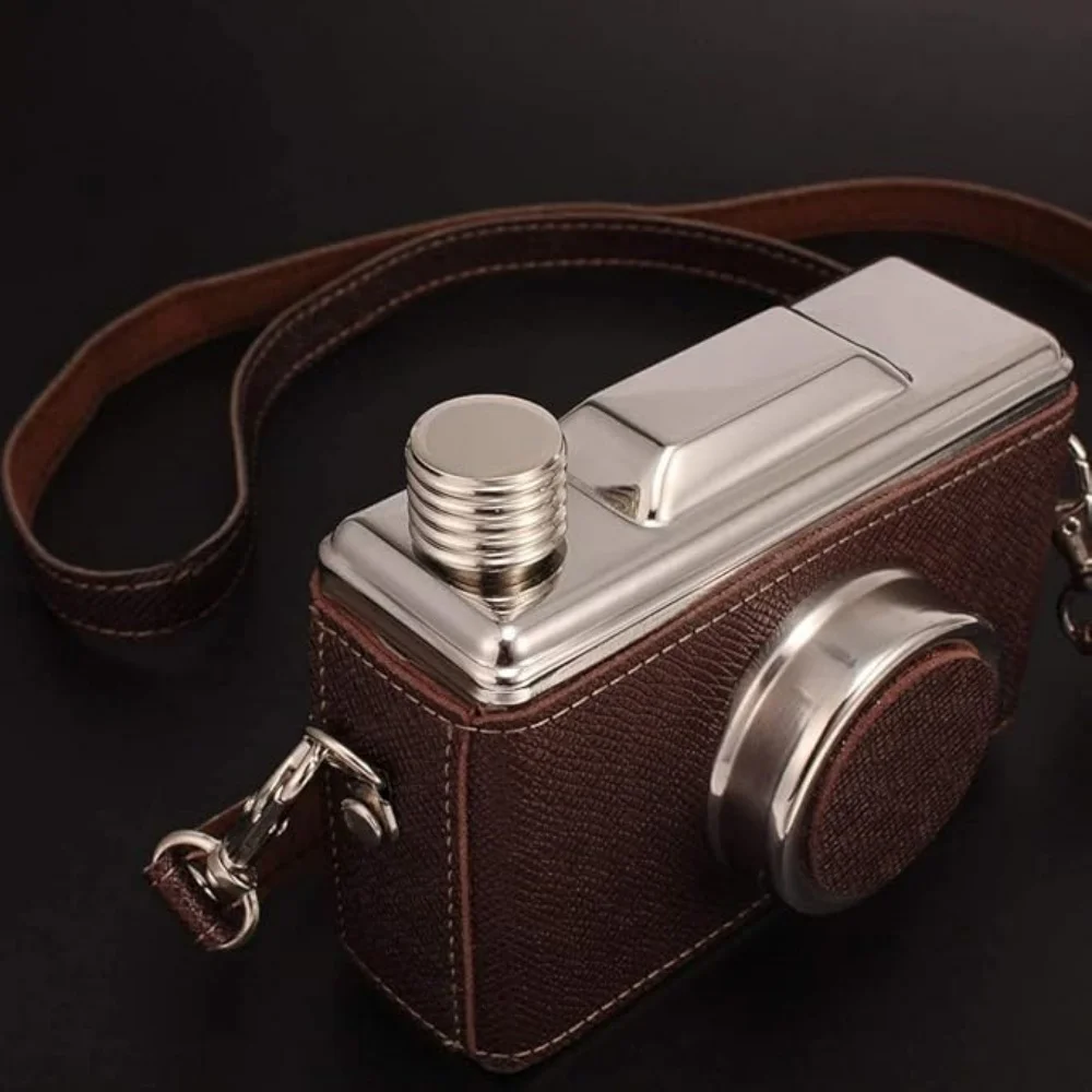 11OZ 325ML Kreative Kamera Flachmann Edelstahl Alkohol Flasche mit Riemen Tragbare Whisky Flachmann Personalisierte Outdoor