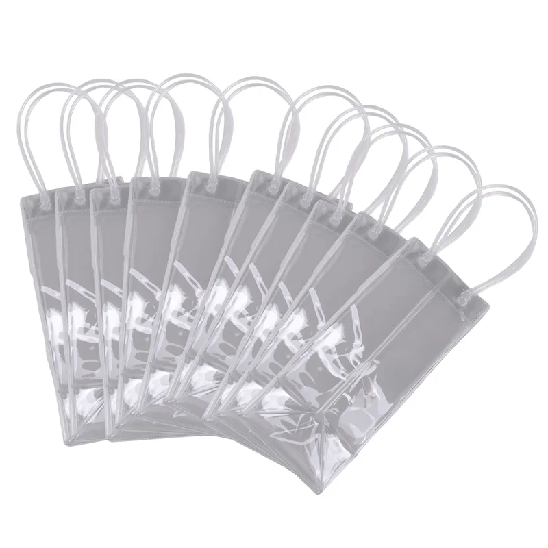 ABRT-Pack Of 10 Wine Cooler Bag Transparent PVC Bag Portable Wine Bottle Cooler Bag Champagne Ice Bag With Handle