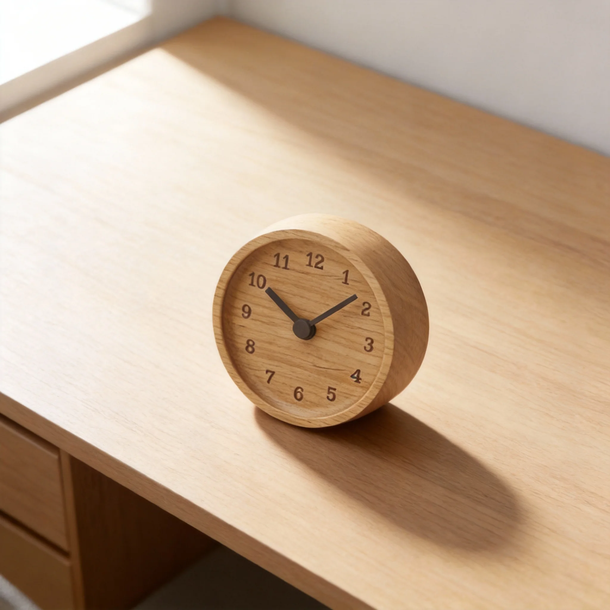 Geräuschlose Tischuhr aus massivem Holz für elegante Heim- oder Bürodekoration, als Schreibtisch- oder Schlafzimmerdekoration.