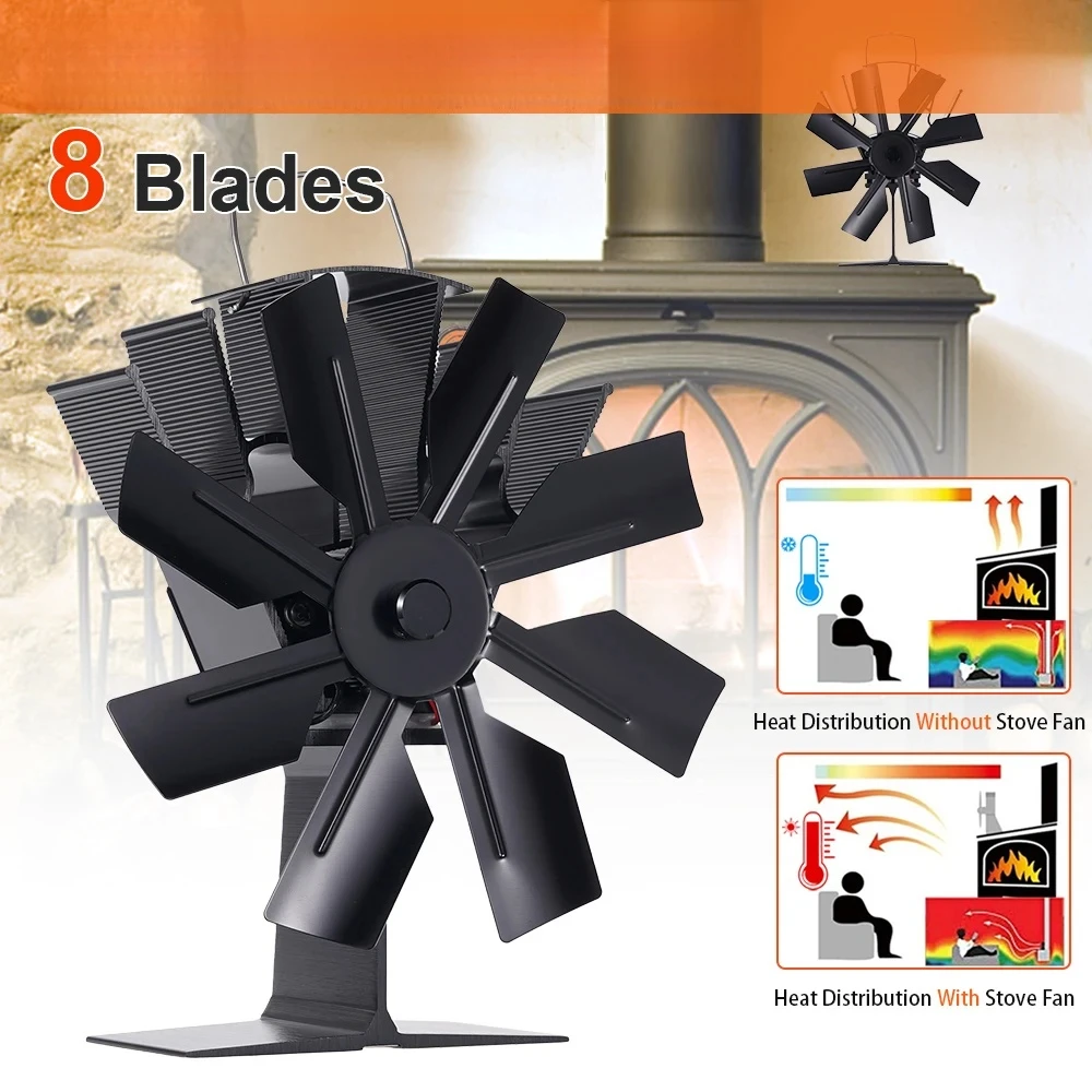 8-Blatt-Kamin-Holzbrenner-Zubehör, leiser, energiesparender, hochwärmeableitender Ventilator für drinnen und draußen, Camping