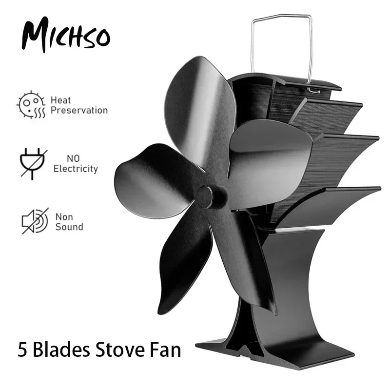MICHSO Öko-Kaminventilator, Wärmebetriebener Fünfblatt-Ventilator für Geräuscharme Heimheizung im Winter, Holzofen-Betrieb