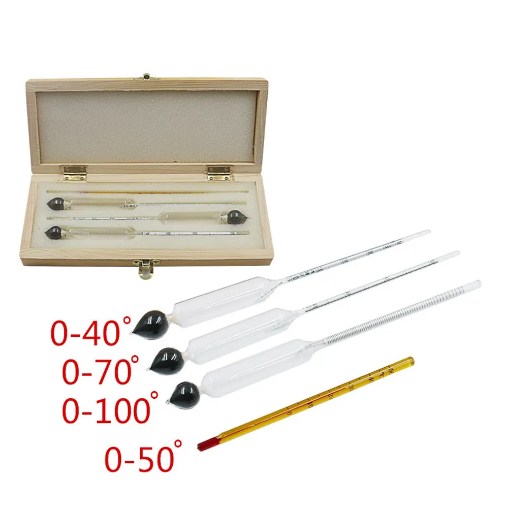 4-teiliges Professionelles Alkohol-Testgerät Glas-Hydrometer mit Papierskala in Holzbox für Spirituosen Destilliertes Wasser Medizinische Zwecke