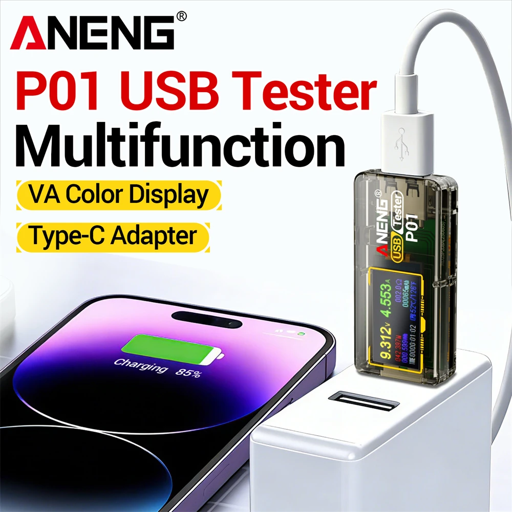ANENG P01 USB-Tester mit LCD-Bildschirm, Digitaler Voltmeter, Amperemeter, Spannungs-, Strom- und Kapazitätsmesser, Batterie-Schnellladegerät, Powerbank-Detektor