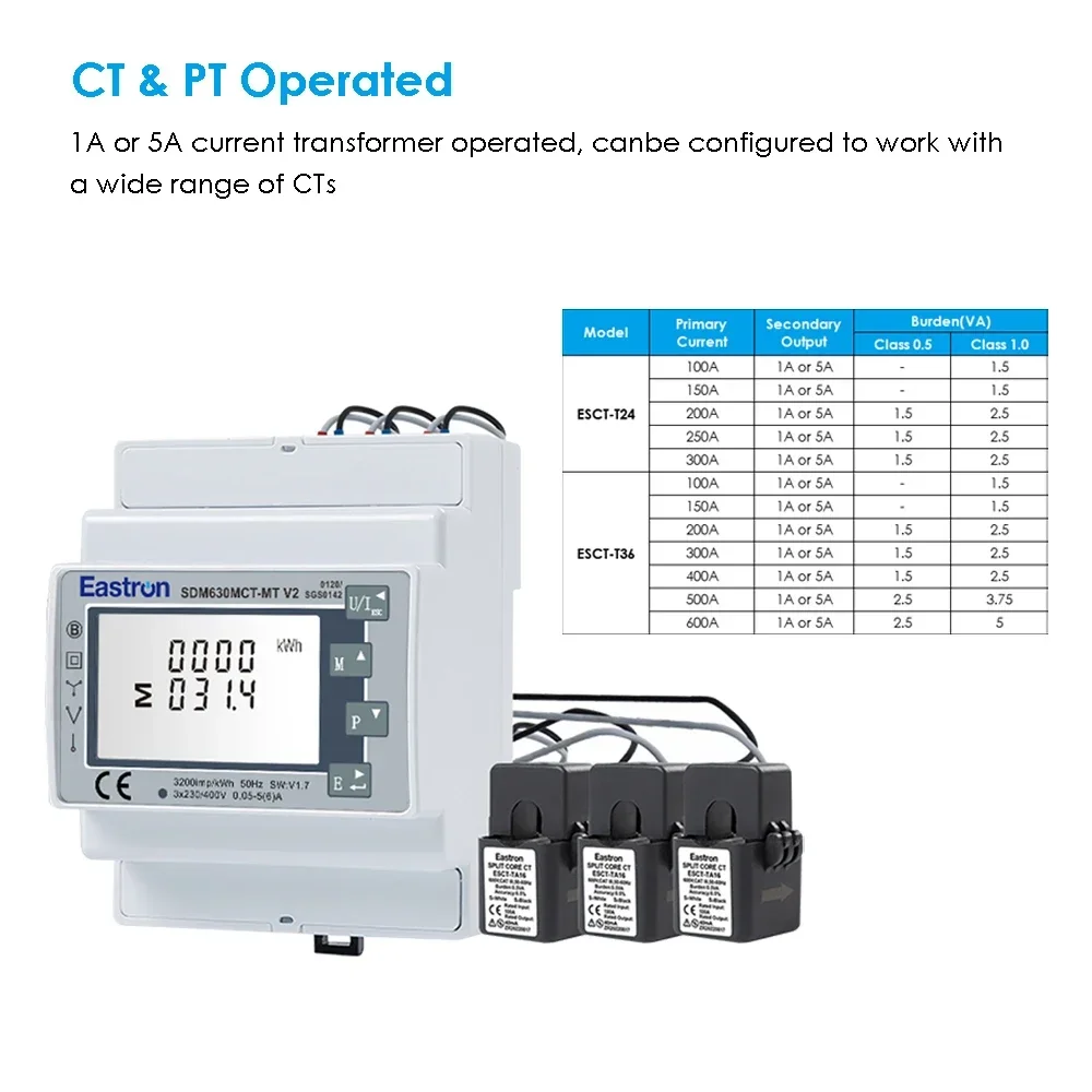 MAIYATANG MMEastron SDM630MCT-MT V2 1P2W/3P3W/3P4W Klasse B Genauigkeit Bidirektionale Messung DIN-Schiene Smart Power Meter
