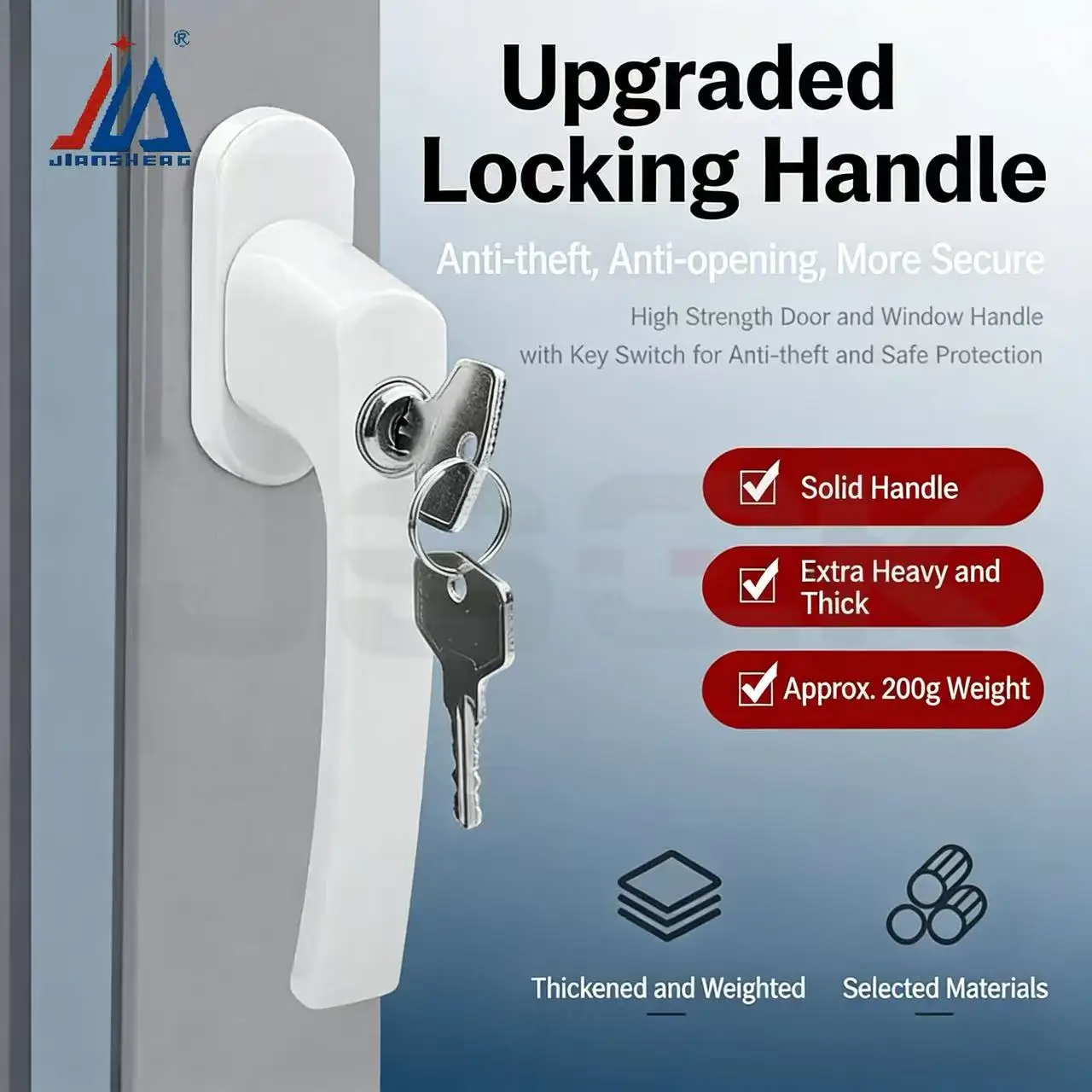 Abschließbarer Fenstergriff aus Aluminiumlegierung – einseitiger Hebelgriff für UPVC/Aluminiumfenster mit 2 Schlüsseln, robuste Sicherheit