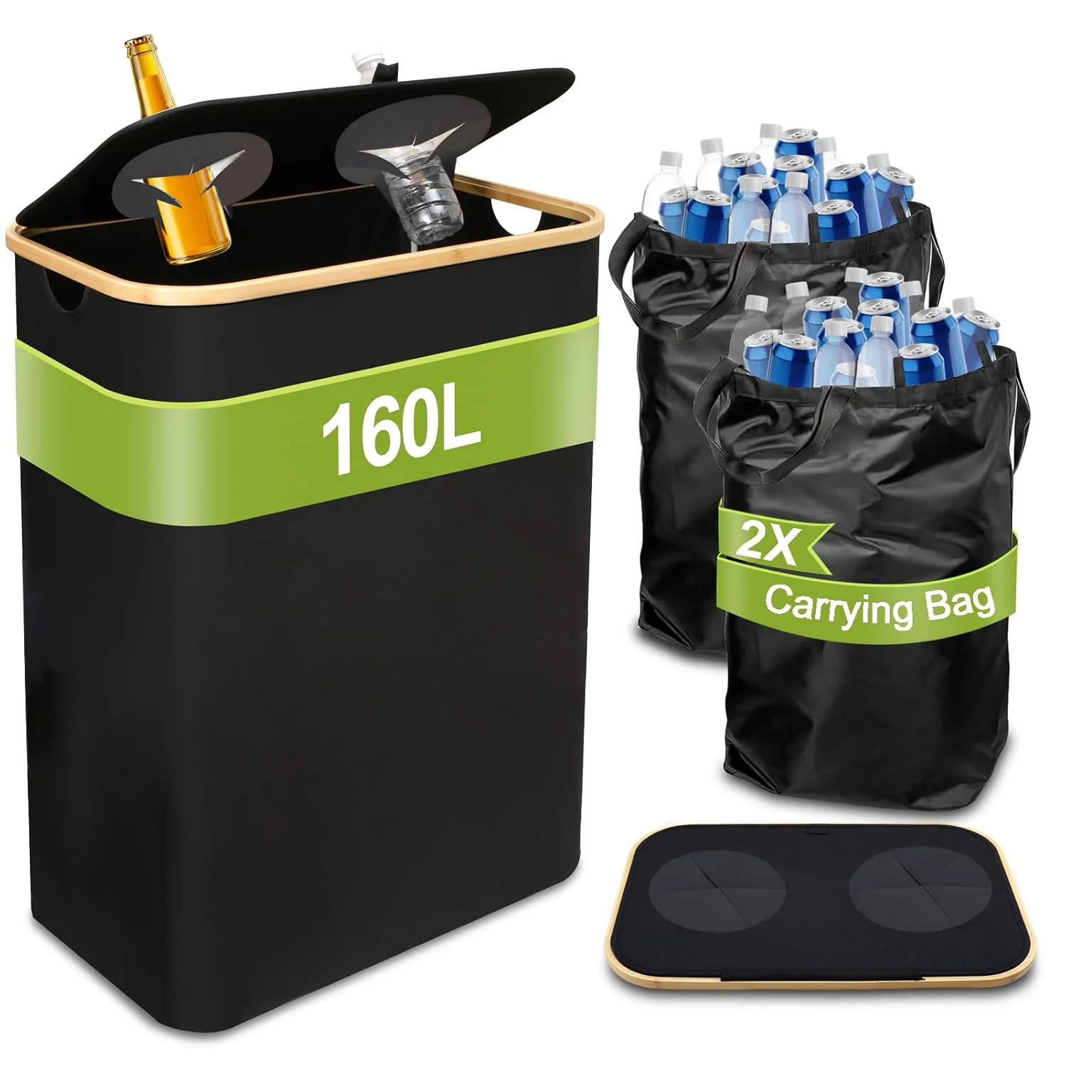 Sammelbehälter für 160-Liter-Ablagerflaschen, 2 Fächer, Aufbewahrungsflaschen mit Deckel, leere und abfallglasaufbewahrung mit Loch