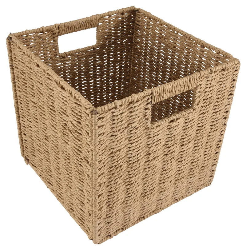 PZHI-Woven Seagrass Farmhouse Kitchen Storage Organizer Basket Bin With Handles For Cabinets,Pantry,Bathroom,Laundry Room