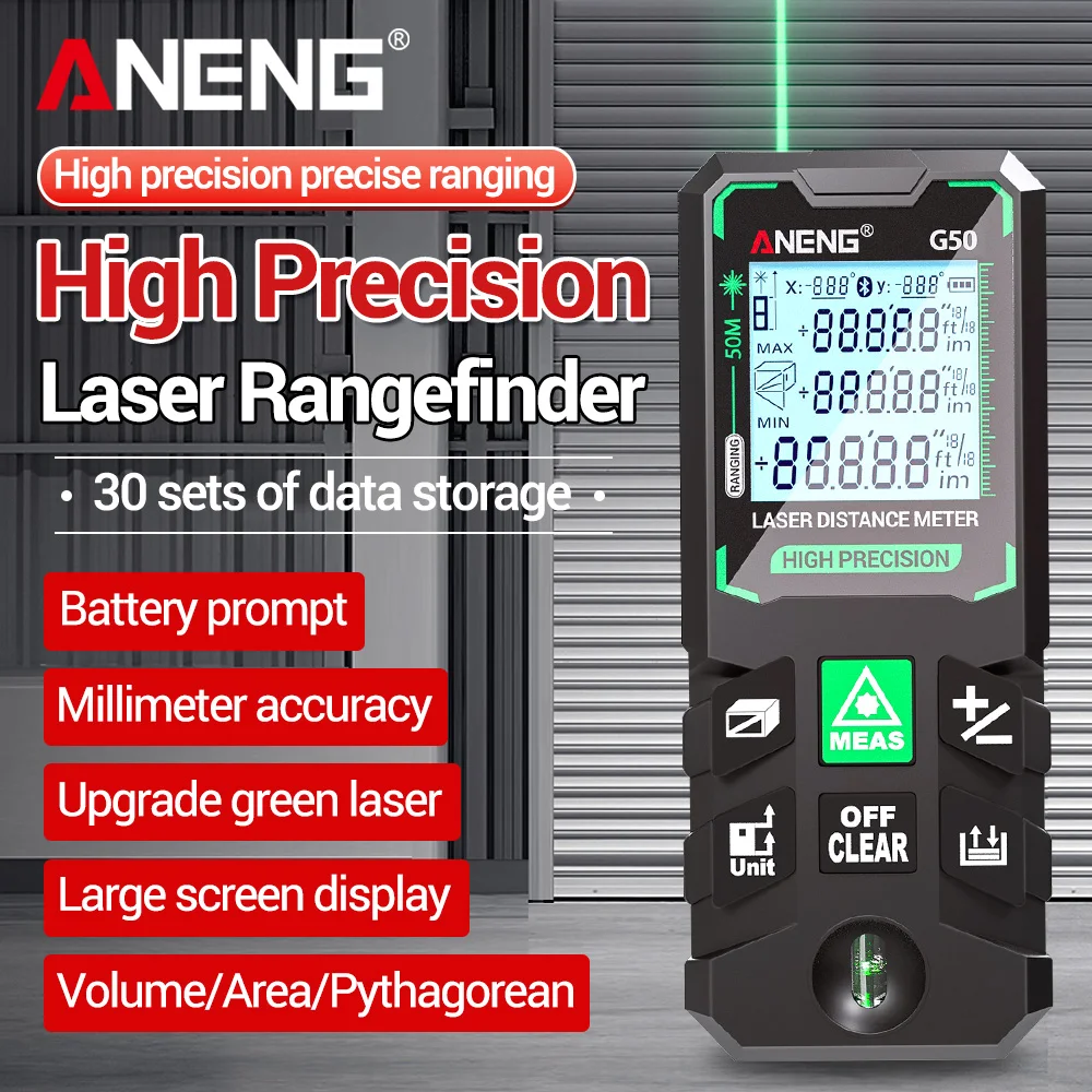 ANENG 120 m hochpräziser Laser-Entfernungsmesser, großes Display, digitale Lautstärke/Bereich/Pythagoras, kontinuierliche Messwerkzeuge