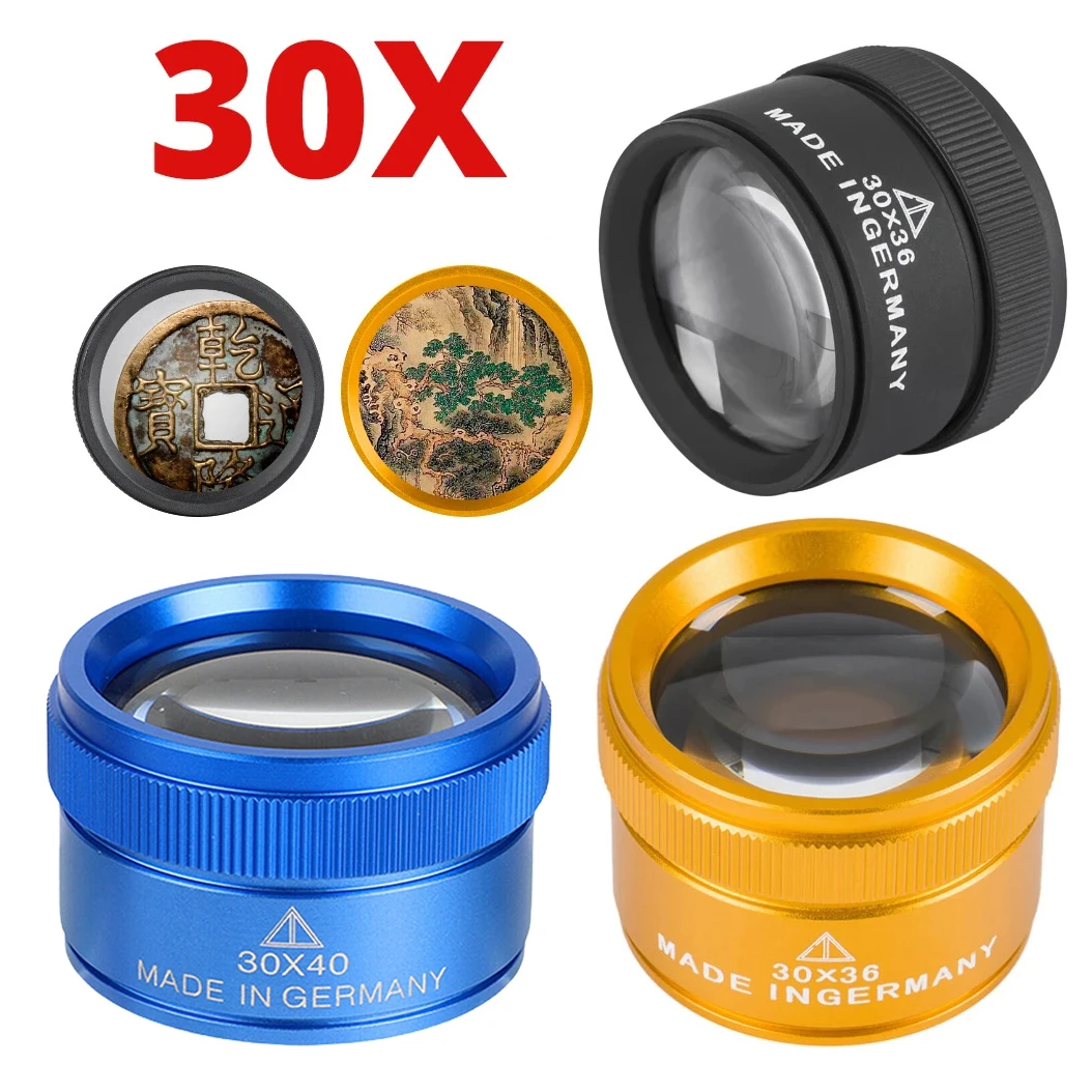 30-fache 36mm Vergrößerungslupe für Präzisionsarbeiten, Optische Linse, Monokel, Uhrenlupe, Handlupe für Münzen, Briefmarken, Schmuck, Taschenlupe