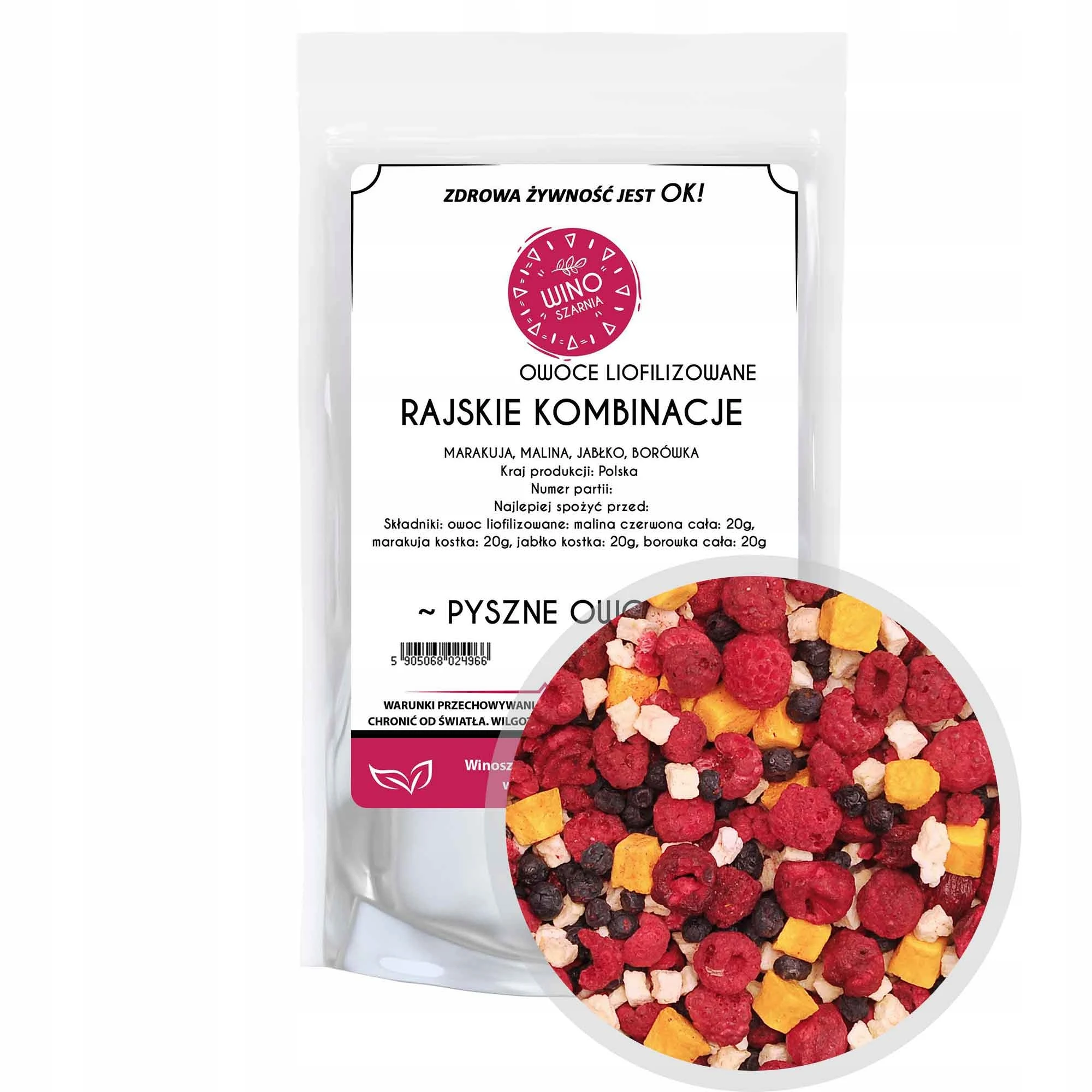 Paradise Combinations Gefriergetrocknete Früchte Marakuja Himbeere Apfel 80 Doypack