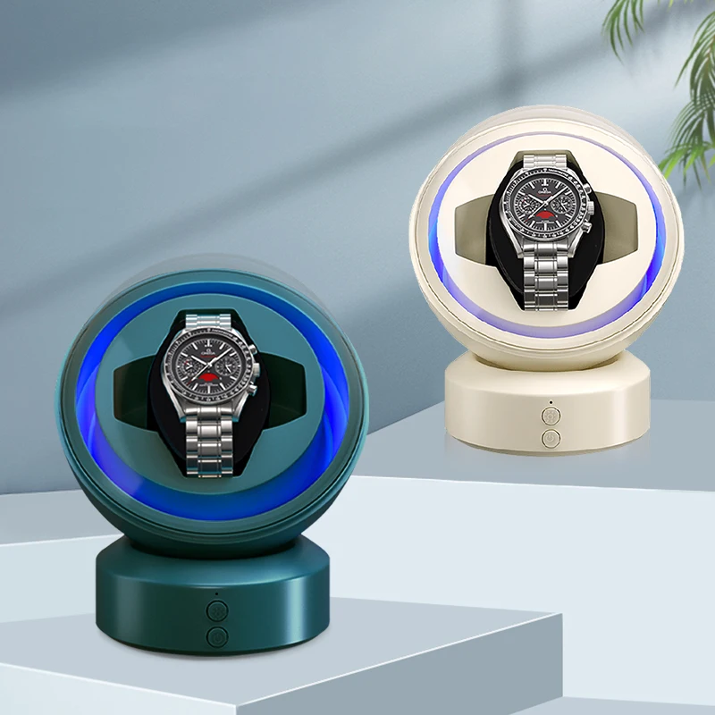 1 Stück Niworkshop Automatik-Uhrenbeweger, 1 Steckplatz-Uhrenaufbewahrungskoffer, Uhrenbox mit Raumkapsel-Design und LED-Licht