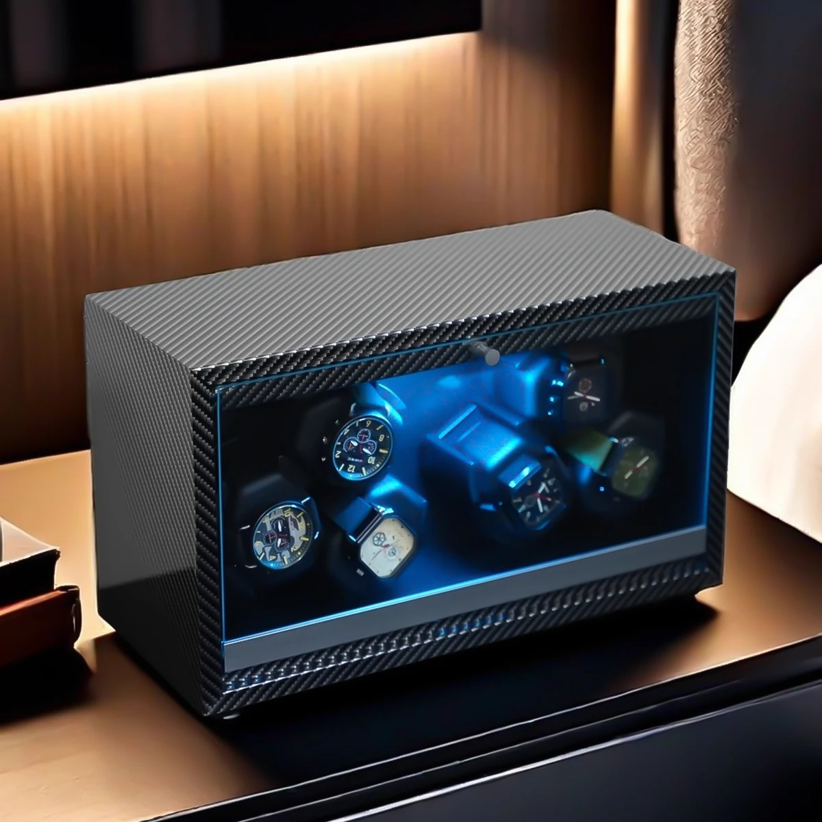 Uhrenbeweger für Automatikuhren, 6/4/2/1 Fächer, Uhrenschüttler, Holzkiste, Supermotor, blaues LED-Licht, Juweliergeschäft, Präsentationsbox