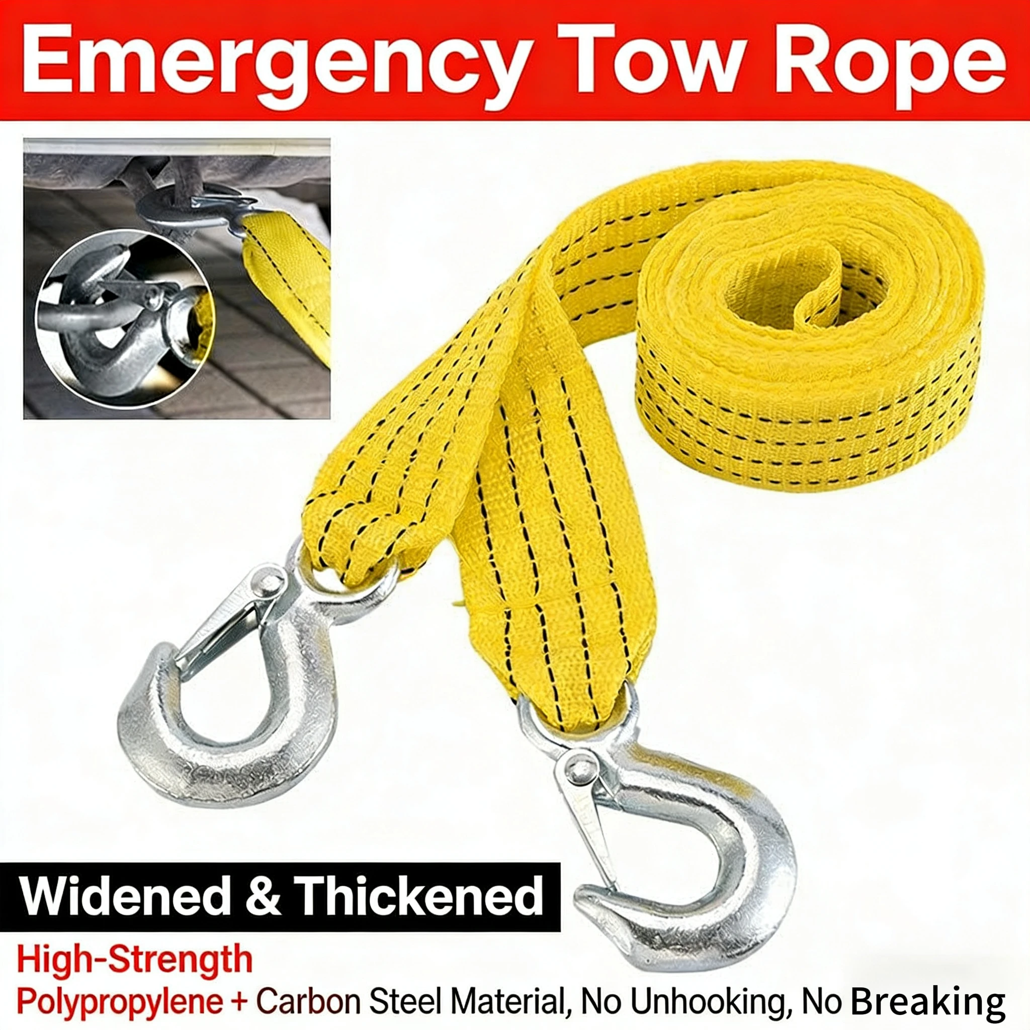4M5Ton Auto-Abschleppseil, Abschleppseil, Gurt mit Haken, tragbar, selbstfahrend, Tourismus, schweres Rettungsseil, doppelte Verdickungsschicht