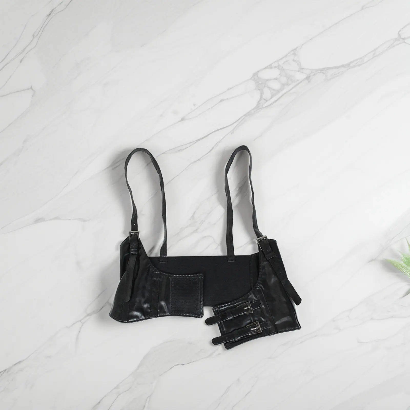 Stilvoller Brust- und Taillengurt für Damen, atmungsaktiver Denim-PU-Gürtel, verstellbare Riemen für den täglichen Gebrauch, Party, Festival, Cosplay