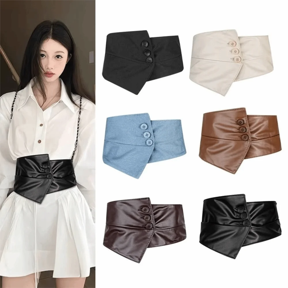 Gothic Tuch PU Leder Korsett Knopf Spicy Girl Breiter Gürtel Schlankheitsbund Breite Kummerbunds Outfits