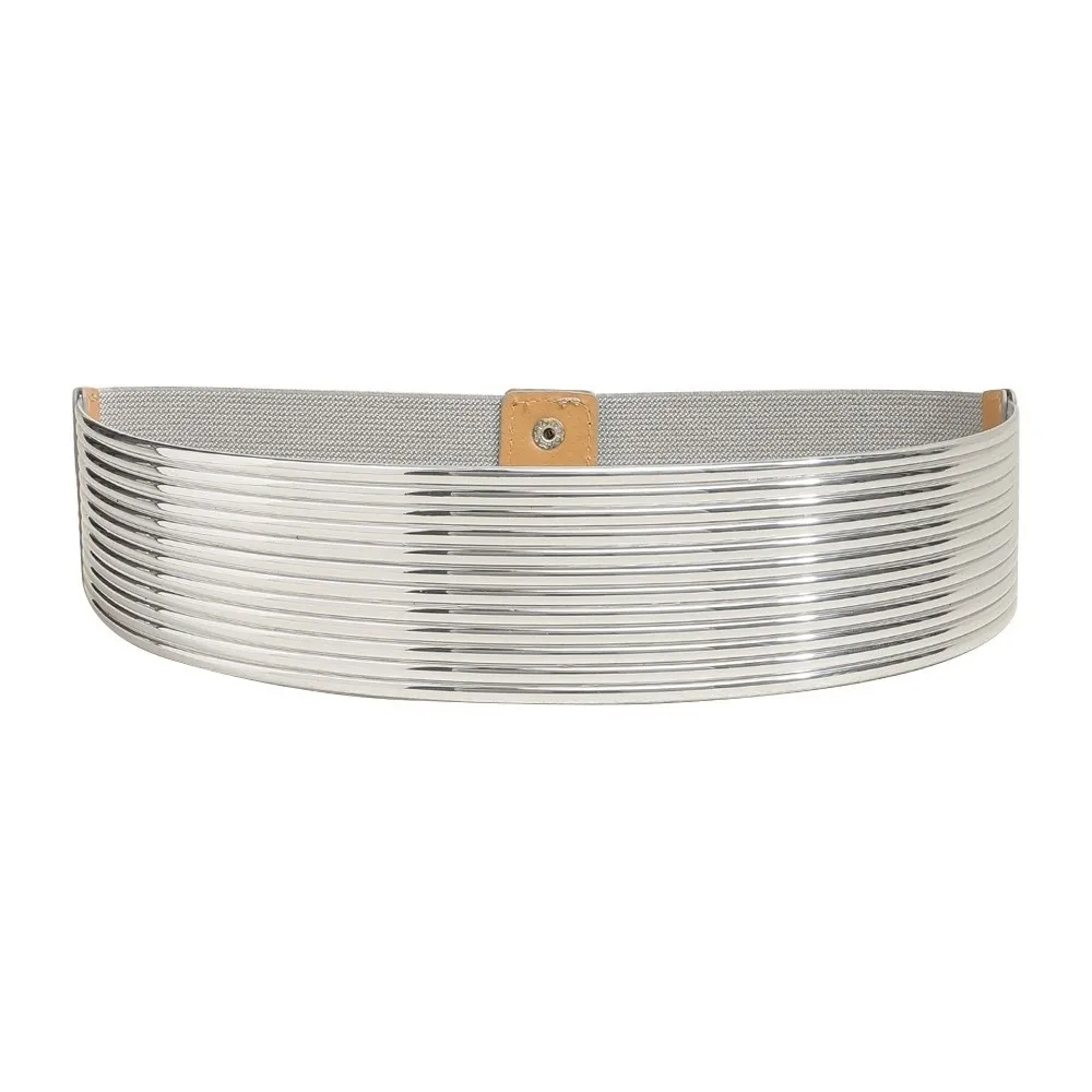Allgleiches Gold Frauen Taille Gürtel Helle Silber Taille Korsett Gürtel Lange Punk Elastische Cummerbunds Party