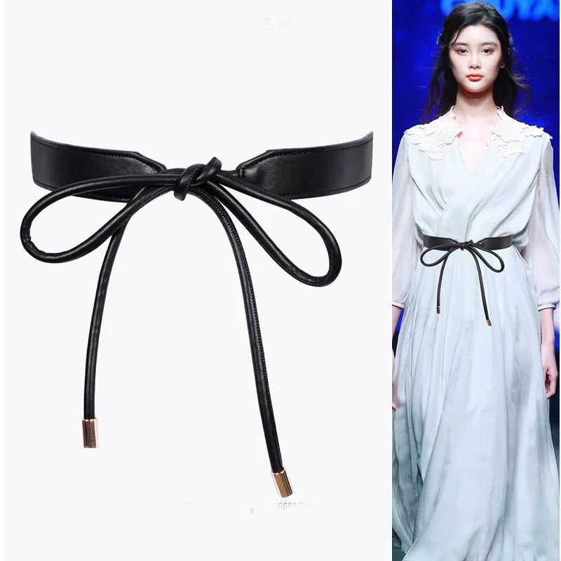 DIY lange weiche Ledergürtel für Damen, modisch, geknotete Schleife, Schwarz, Rot, Braun, Khaki, Farbe, Taille, Kummerbunds für Rock, Kleid, Party