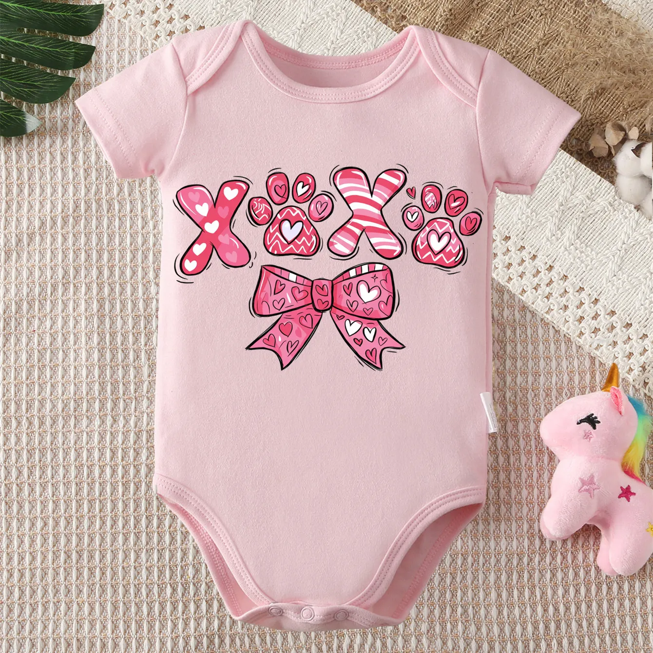 Body aus reiner Baumwolle, Happy Valentine's Day, rosa Schleife, bedruckt, bequemer Einteiler, Kleidung für Babys, Overall für Neugeborene im Alter von 0 bis 12 Monaten