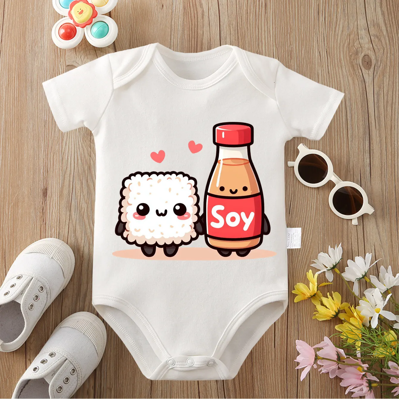 Einteiler aus reiner Baumwolle „We Are Happy Family“, exquisite bedruckte Tücher, bequemer Body für Baby-Overall für Neugeborene im Alter von 0 bis 12 Monaten