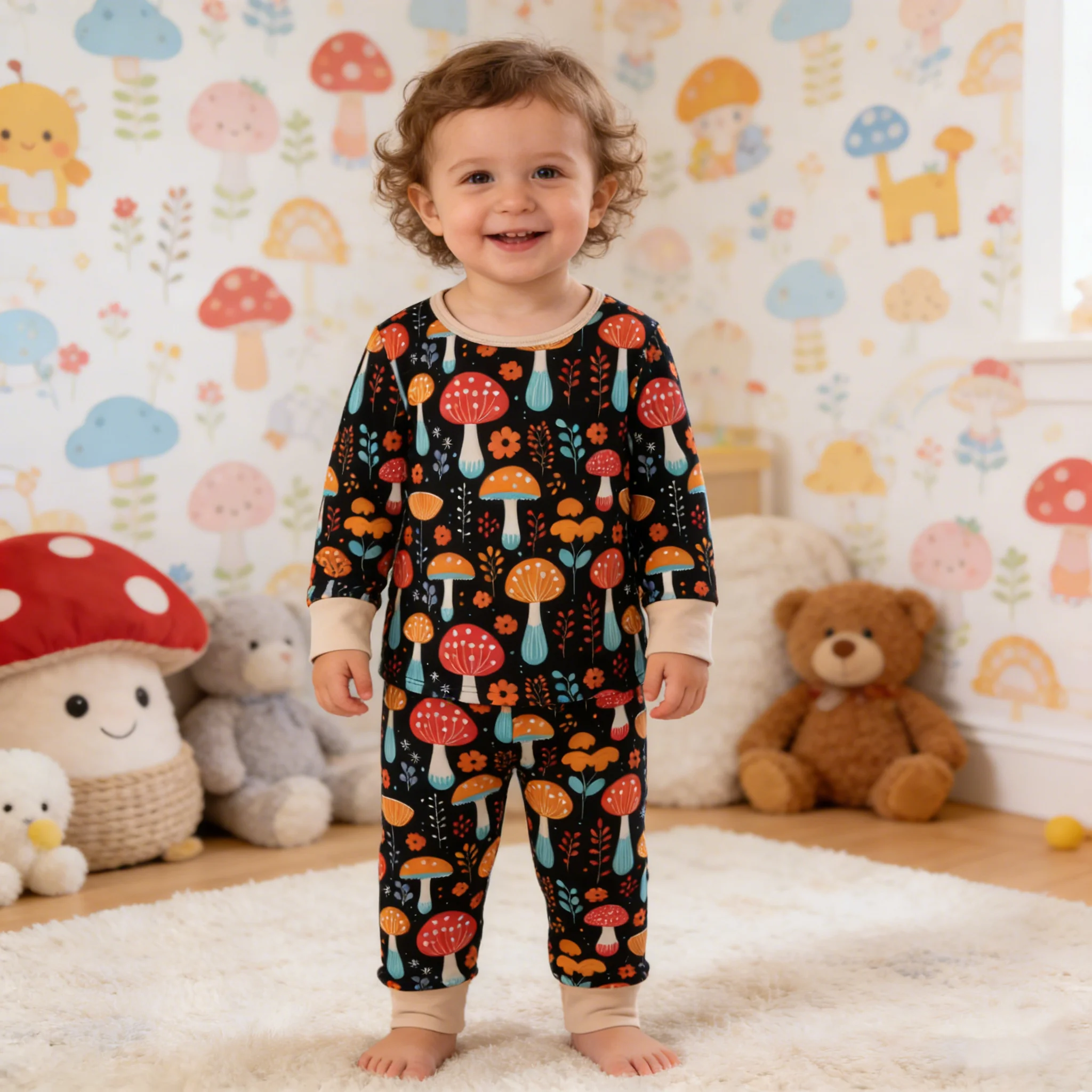 Bedrucktes Baby-Set aus Bambusfaser für alle Jahreszeiten, Jungen- und Mädchen-Set für drinnen und draußen.