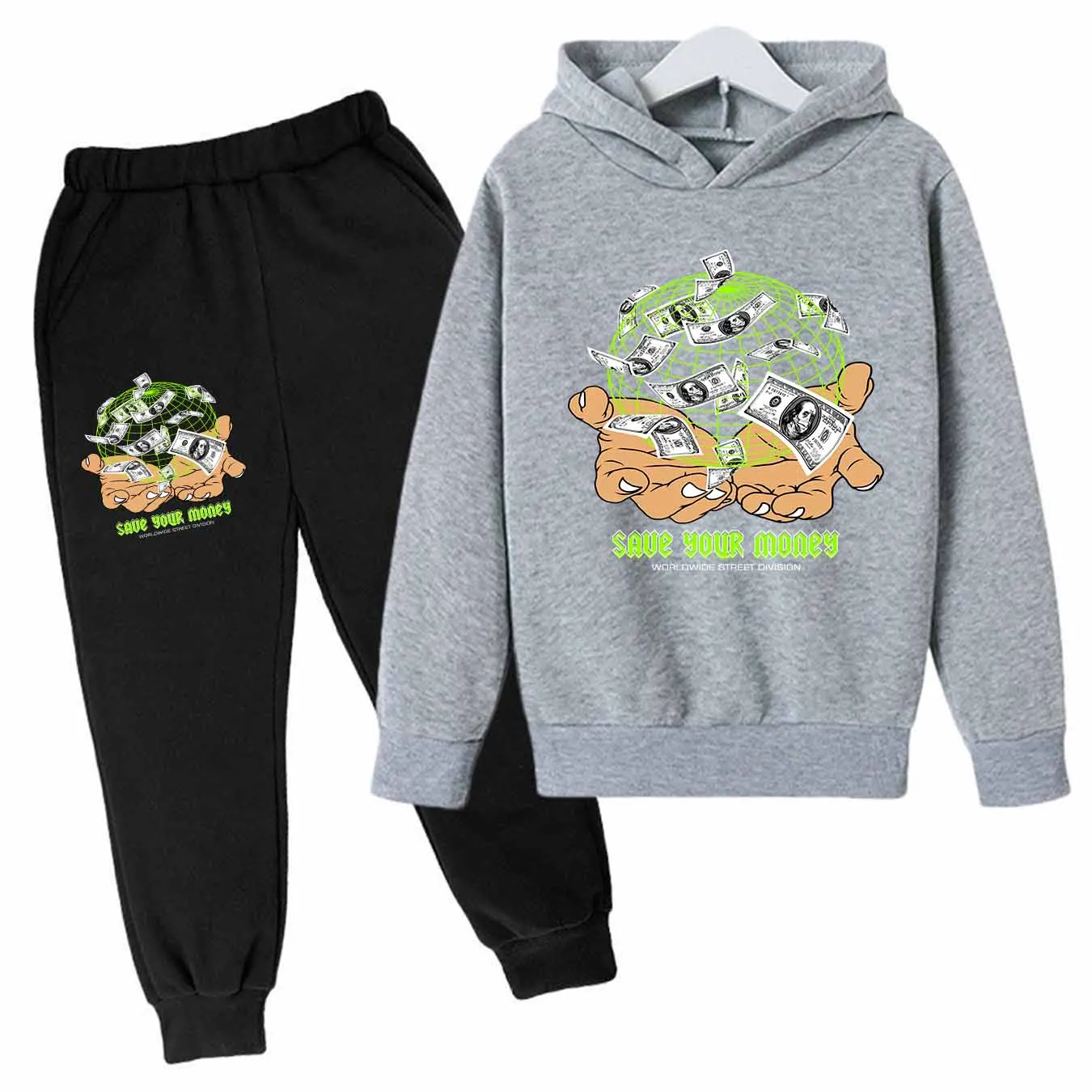 Fun Space Monsters Kinder-Trainingsanzug, Kapuzenpullover mit Astronauten-Monster-Aufdruck + Hosen-Set, trendiges Freizeit-Outfit für Jungen und Mädchen