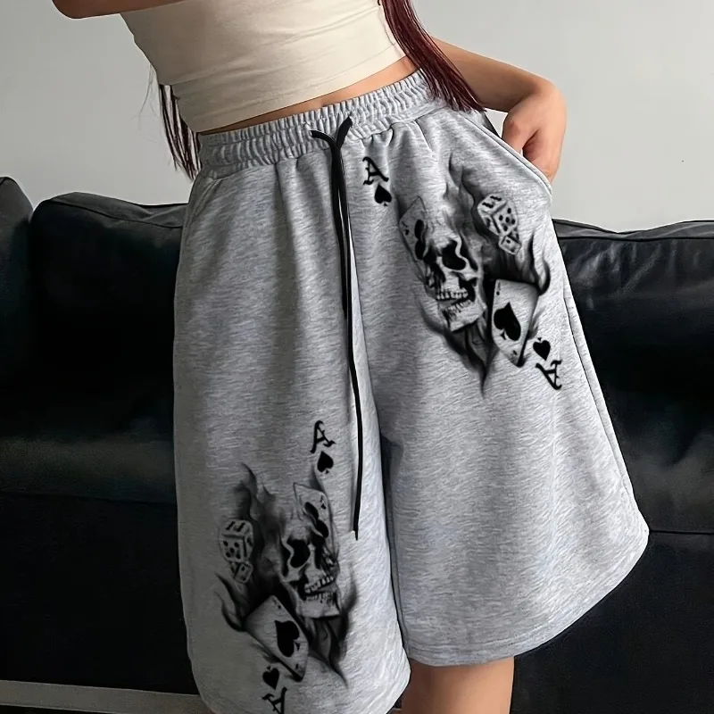Damen Street Retro Herren- und Damen-Modehosen mit Totenkopf-Print, Fünf-Viertel-Shorts, lockere Shorts, Sommer, neuer Stil