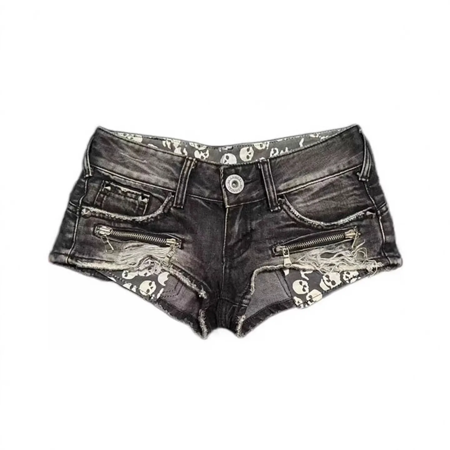 Y2K Shorts Sexy Totenkopf-Print Zerrissene Niedrige Taille Denim Super Shorts Damen Slim Hot Pants Booty Shorts