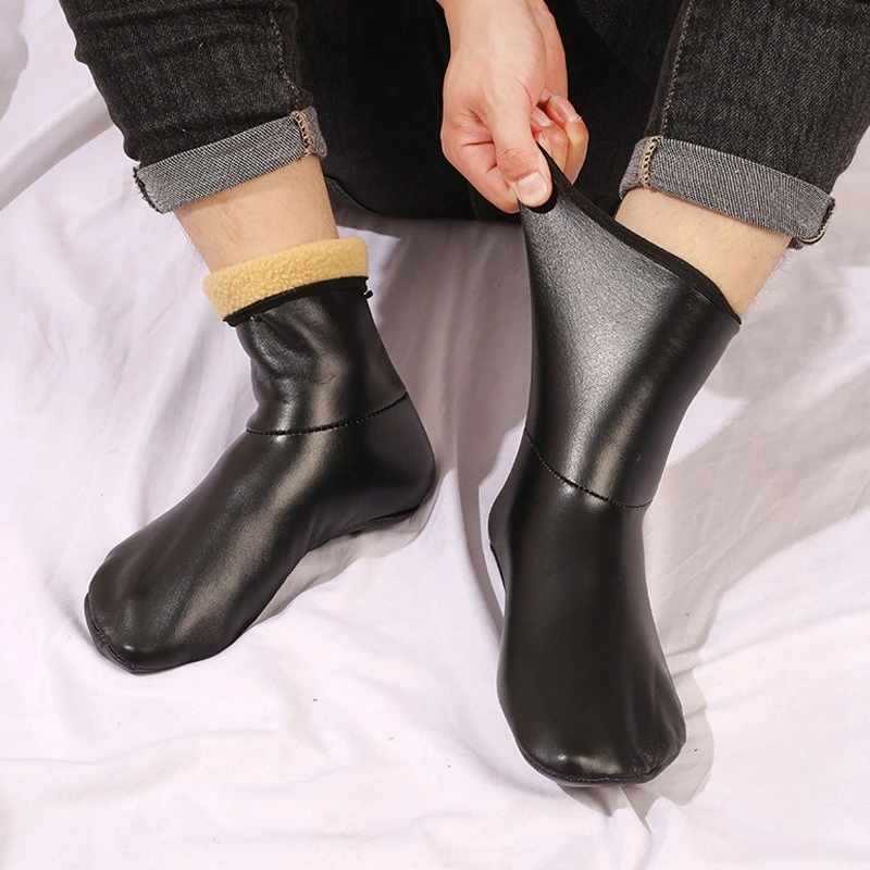 Herren Damen Outdoor-Sport Warme Schneefeld-Socken für Herbst Winter Verdickte Winddichte Innenplüsch Hohe Leder-Bodensocken