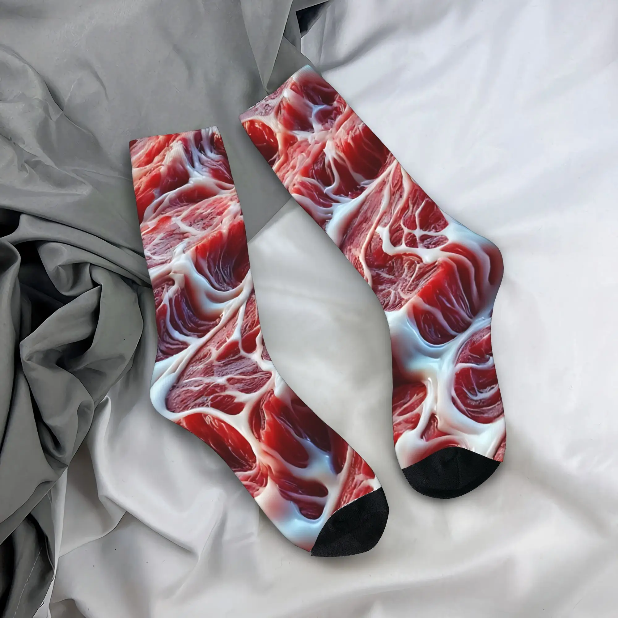 Herrensocken mit Wagyu-Motiv, appetitliche Rohfleisch-Textur, Herbstsocken, lustige, bequeme Socken, bedruckte Outdoor-Sportsocken, rutschfeste Socken