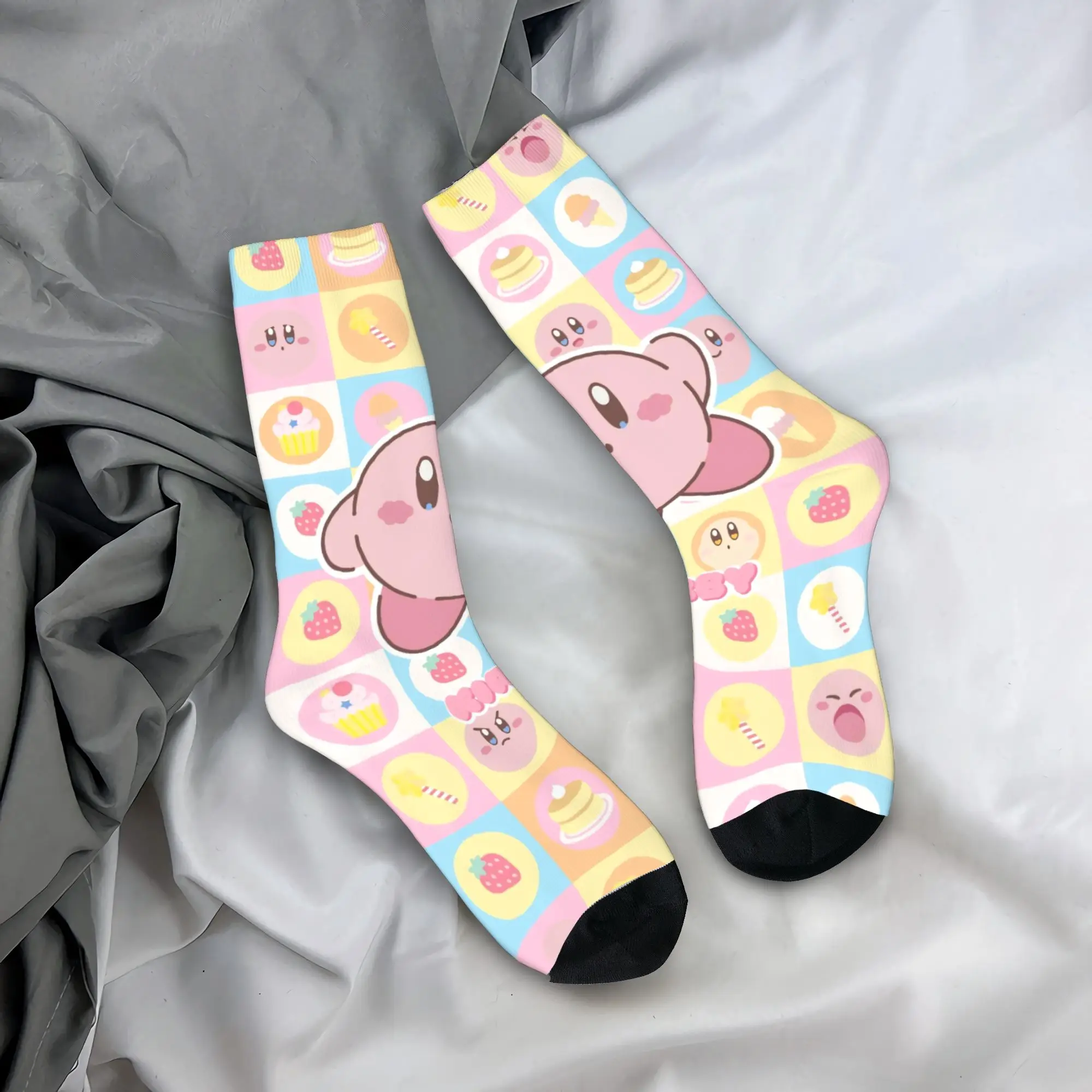 Lässige Cartoon-K-Kirbys-Fußballsocken aus Polyester, lange Socken für Damen und Herren, schweißabsorbierend
