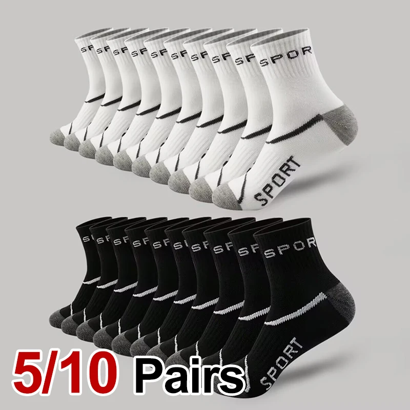 5/10 Paar neutrale Laufsocken, modisch, schlicht, bedruckt, weich, bequem, schweißabsorbierend, atmungsaktiv, für alle Jahreszeiten, Freizeitsocken