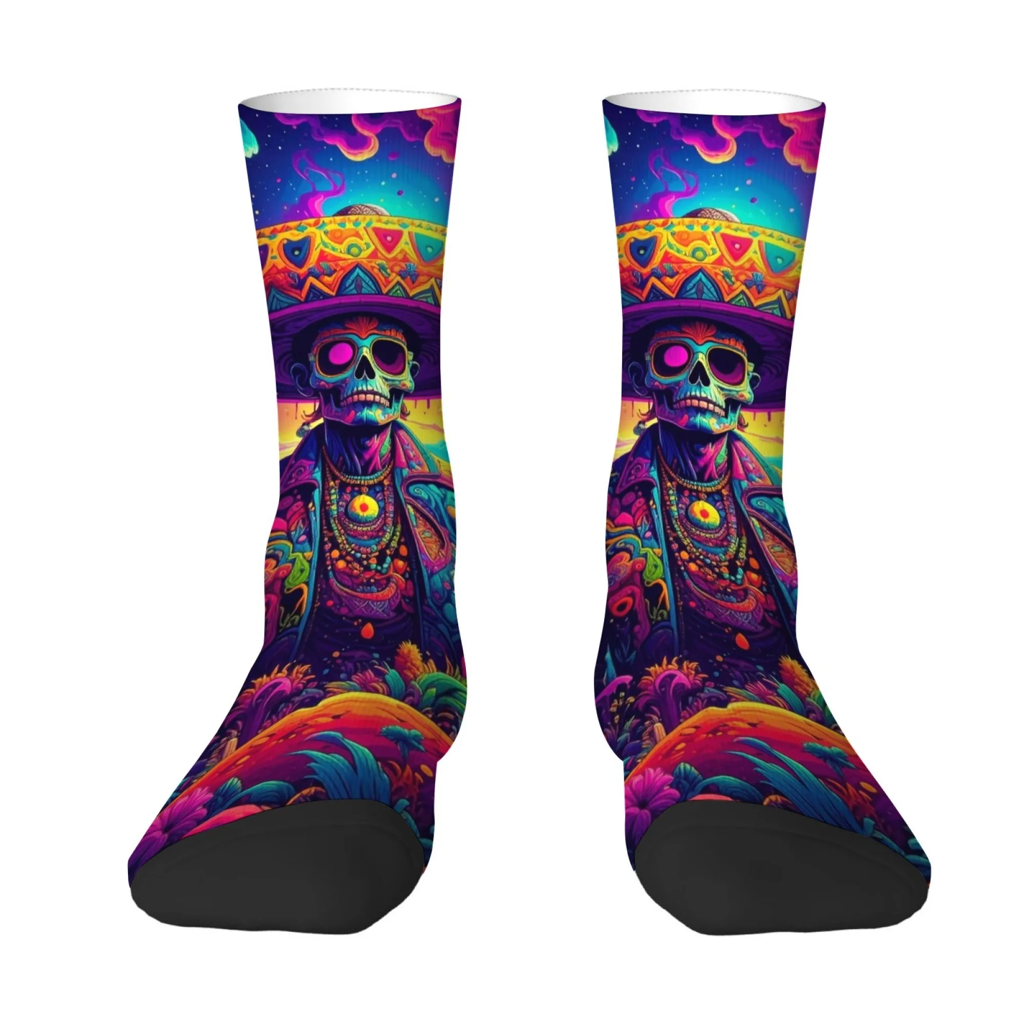 Day of The Dead "Sugar Skull" Herren-Socken bis zur Mitte der Wade, lustige und stilvolle, ethnisch inspirierte, weiche und hautfreundliche Sportsocken
