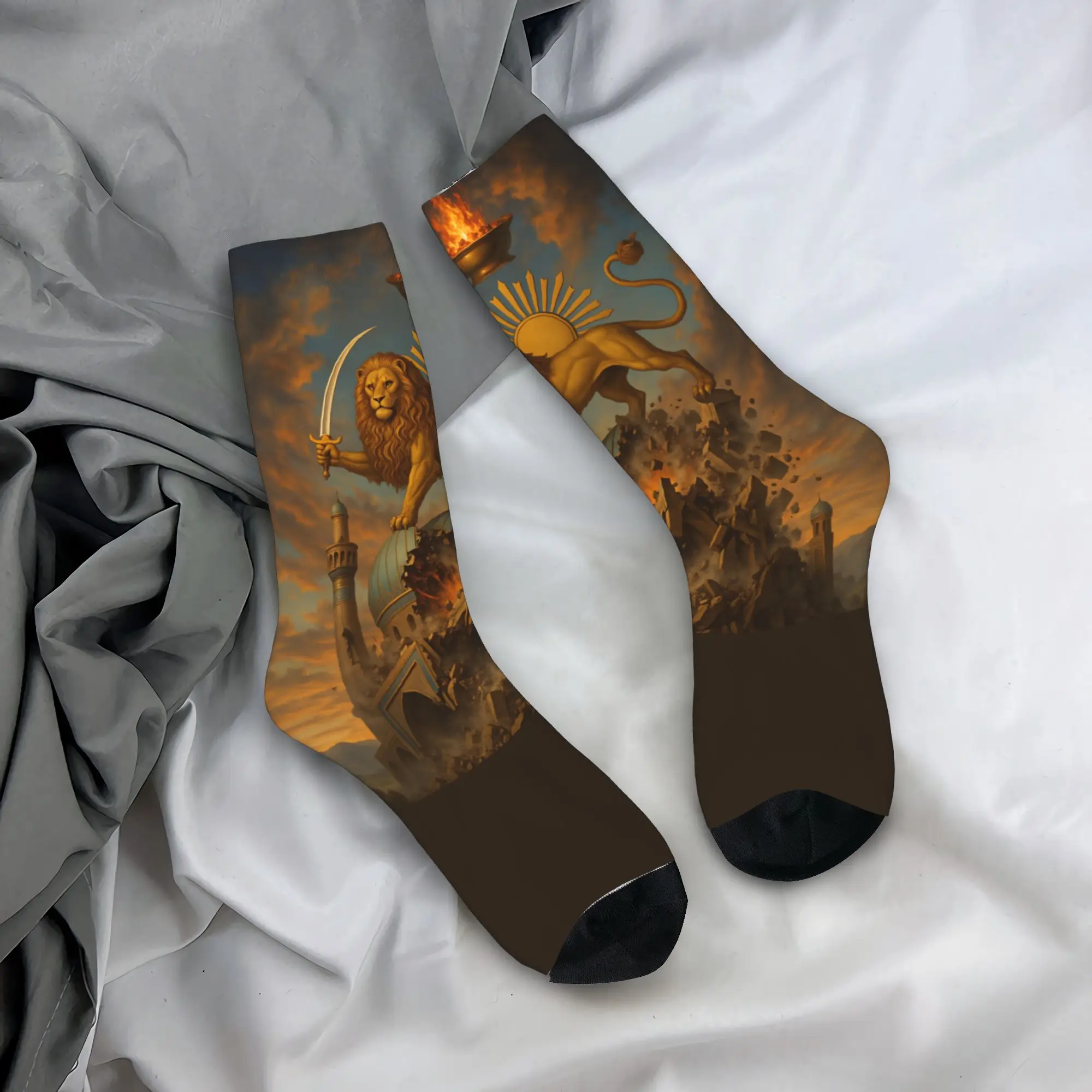 Iran-Karte mit Löwe und Sonne, königliche Strümpfe, Gothic-Socken, Unisex, weiche, atmungsaktive Socken für Herren, Herbst, bedruckte Anti-Rutsch-Socken, Geschenk