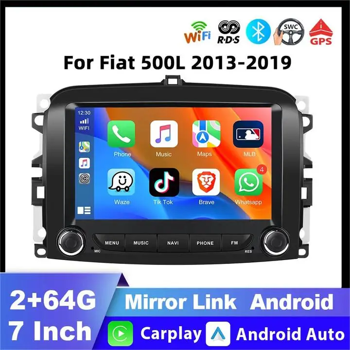 7 Zoll Android 2 Din Autoradio Multimedia-Player 1024*600 für Fiat 500l 2016 2019-GPS Autoradio Stereo-Audio