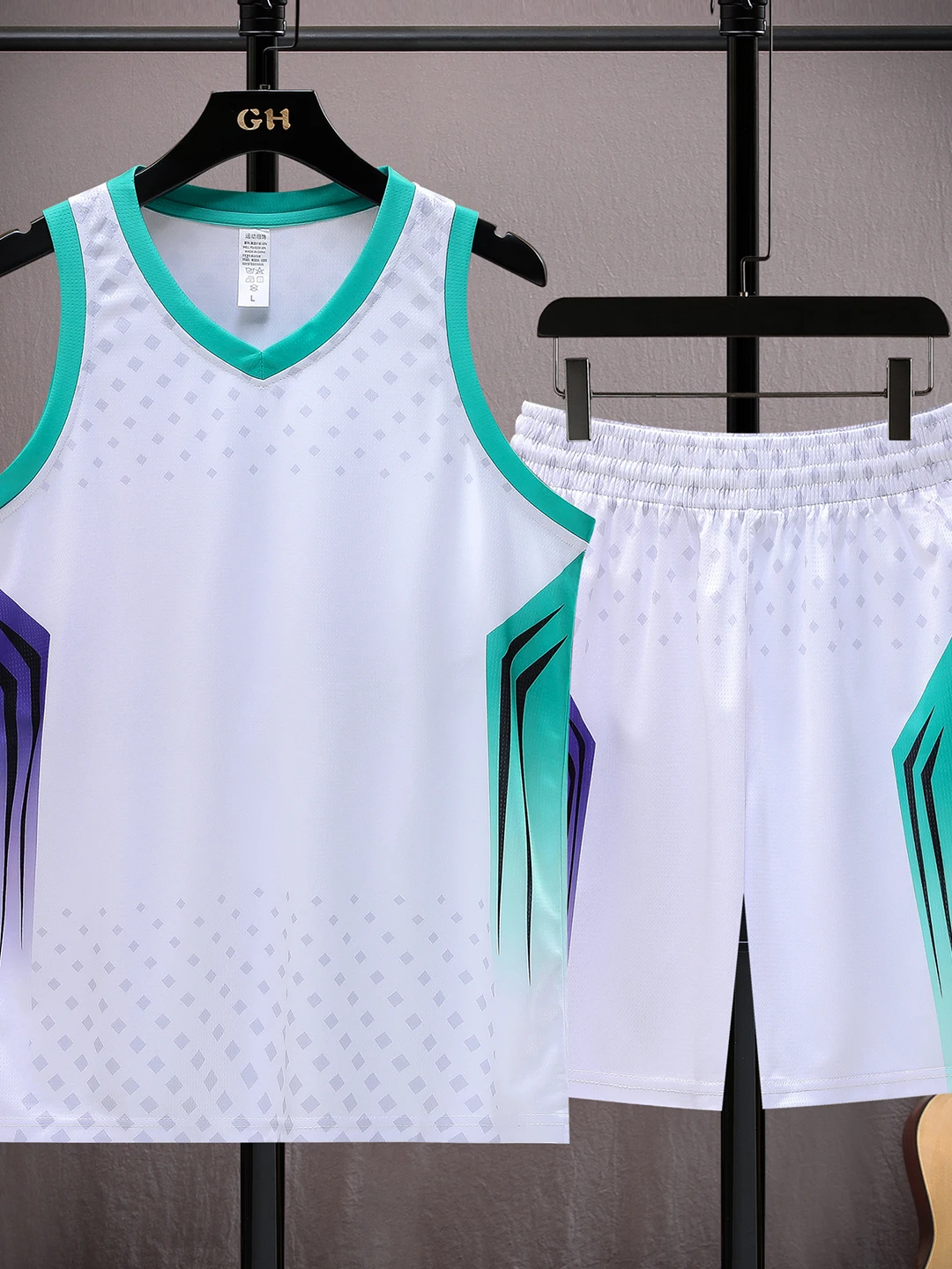 Herren-Basketball-Uniform-Set, schnell trocknend, atmungsaktiv, Weste, Shorts, für Zuhause, Freizeit, Sportbekleidung, Sommer, bequem, weiches Polyester