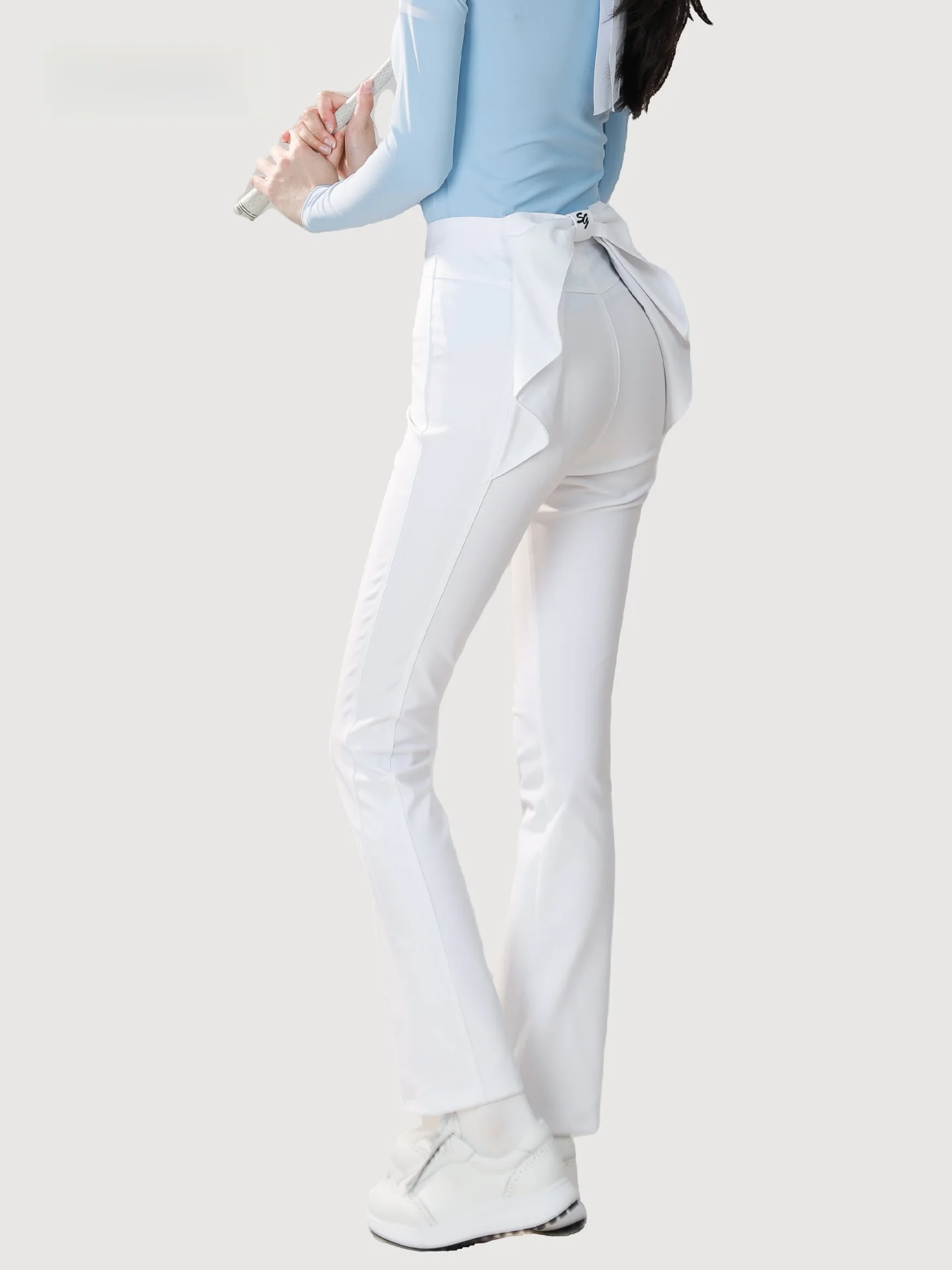 Hochgeschnittene Golfhose für Damen in Weiß mit Knotendetail, Lange Hose mit Schlankmachender Passform, Sportliche Golfballhose, Damen Micro-Flare-Hose
