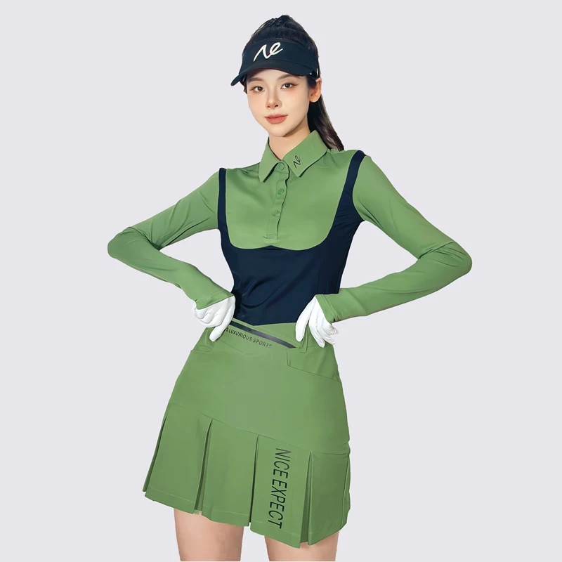 Herbst Winter Warme Neue Sle Golf Gefälschte Zwei-Stück Lange Sve Faionable Personalisierte Rock Abnehmen Schlank Set frauen Golf Tragen