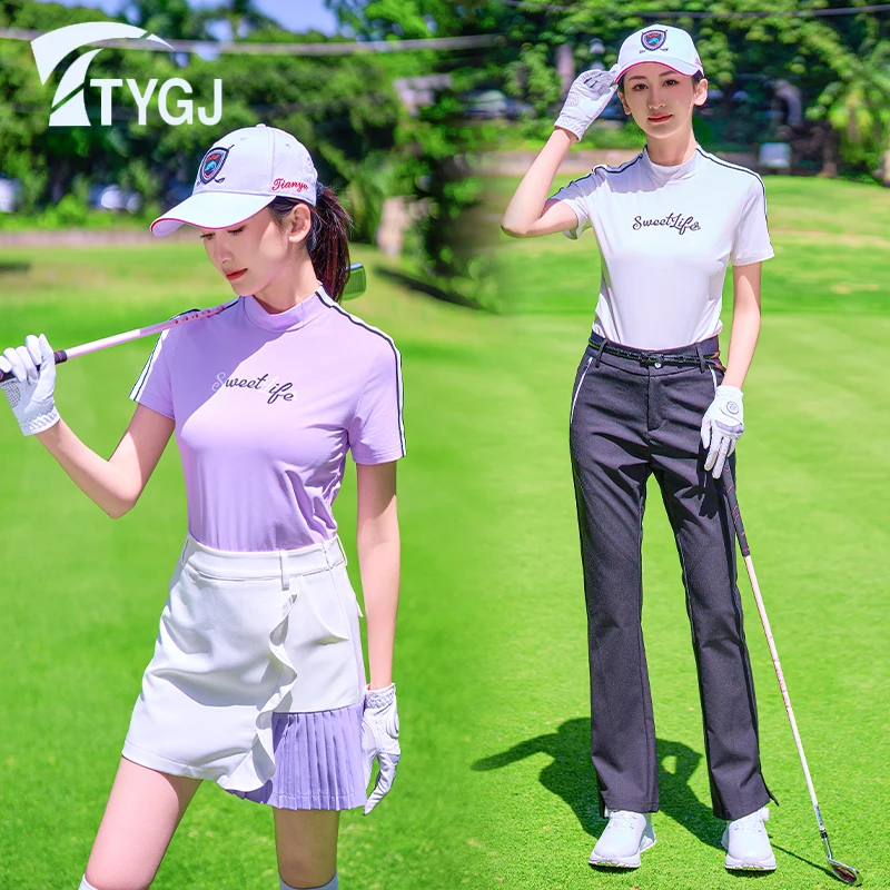 TTYGJ 2025, neues Golf-Damen-Kurzarm-T-Shirt mit schmaler Passform und kleinem Stehkragen zum Abnehmen und vielseitigem Innentop