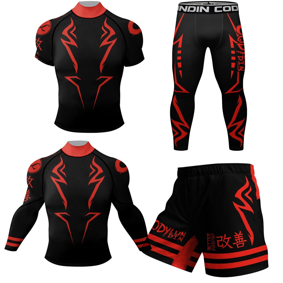 Anti-Gummi-Rutsch-Rashguard MMA Kompressions-T-Shirt + Hose Boxen MMA Shorts Polyester Sublimation Rash Guard Bjj Kickboxen-Sets