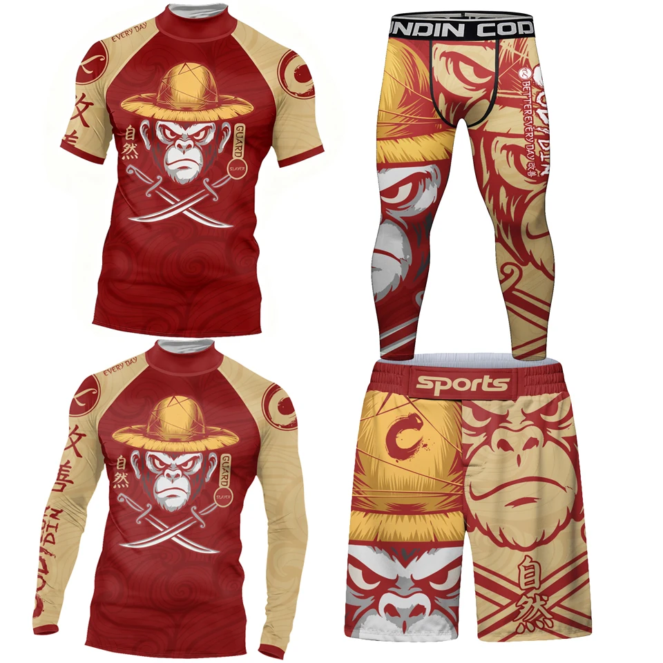 Neue Männer Sporta nzug Rash guard Jiu Jitsu MMA T-Shirt Hosen Sportswear Box Trikots Set Bjj Muay Thai Shorts Rash Guard Trainings anzug