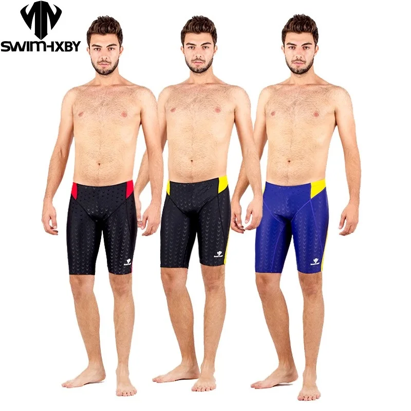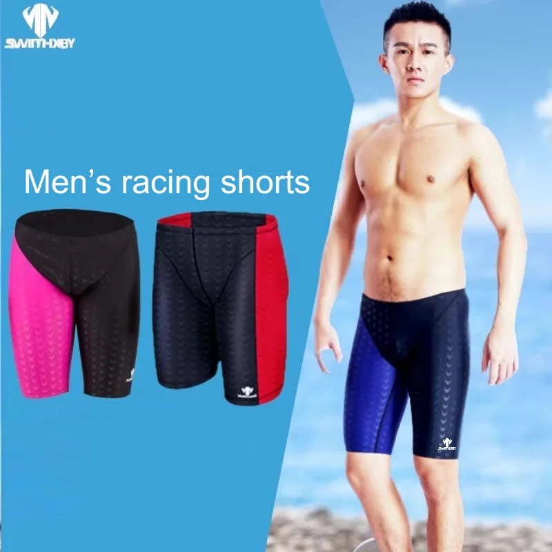 Professionelle Renn-Badehose für Herren, chlorbeständiger Stoff, hohe Elastizität, knielang, Schwimmstörsender