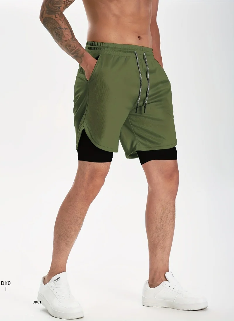 Herren 2-in-1 Sport-Shorts Doppellagige Lauf- und Strandshorts Sommer Fitness-Training Jogging Sportbekleidung Kurze Hosen