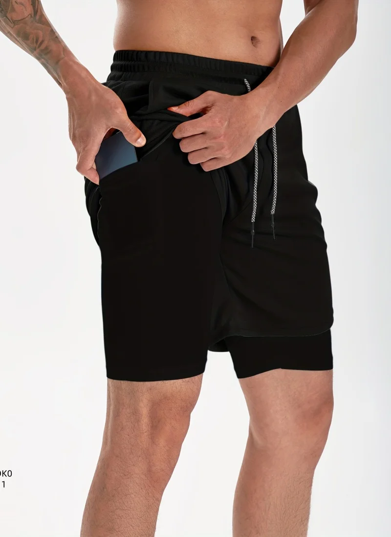 Neue männer laufen doppel-schicht shorts schnell trocknende fitness 2-in-1 shorts männer sport workout training bodybuilding shorts männlichen