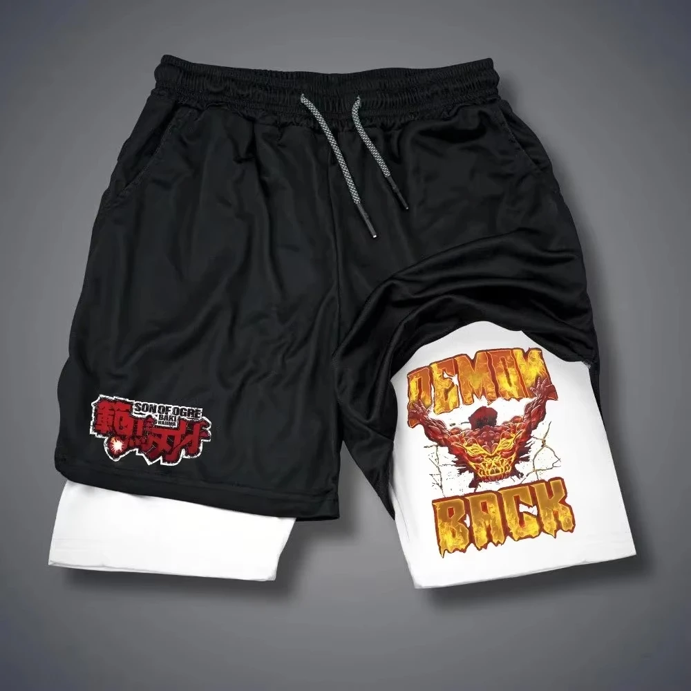 Anime Hunter x Hunter Sportshorts für Herren, doppellagig, 2-in-1, atmungsaktiv, schnell trocknend, schweißabsorbierend, für Fitnessstudio, Laufshorts