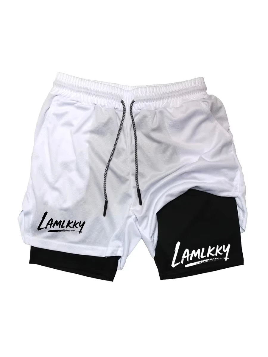 2-in-1-Laufshorts für Herren | Fitnessstudio Workout Athletic mit Handytasche und Handtuchschlaufe HX0037